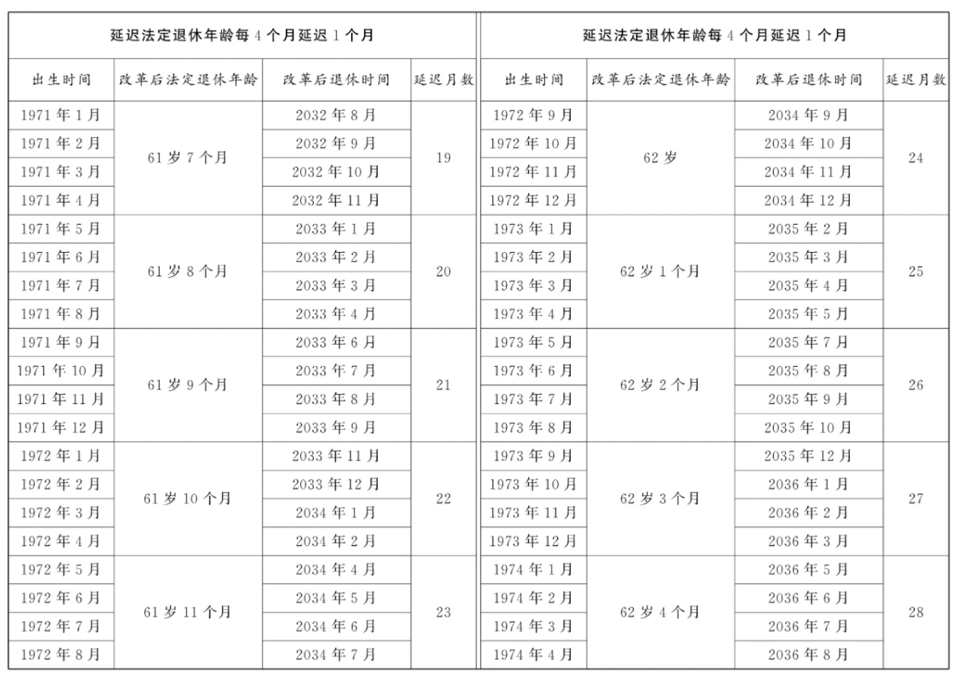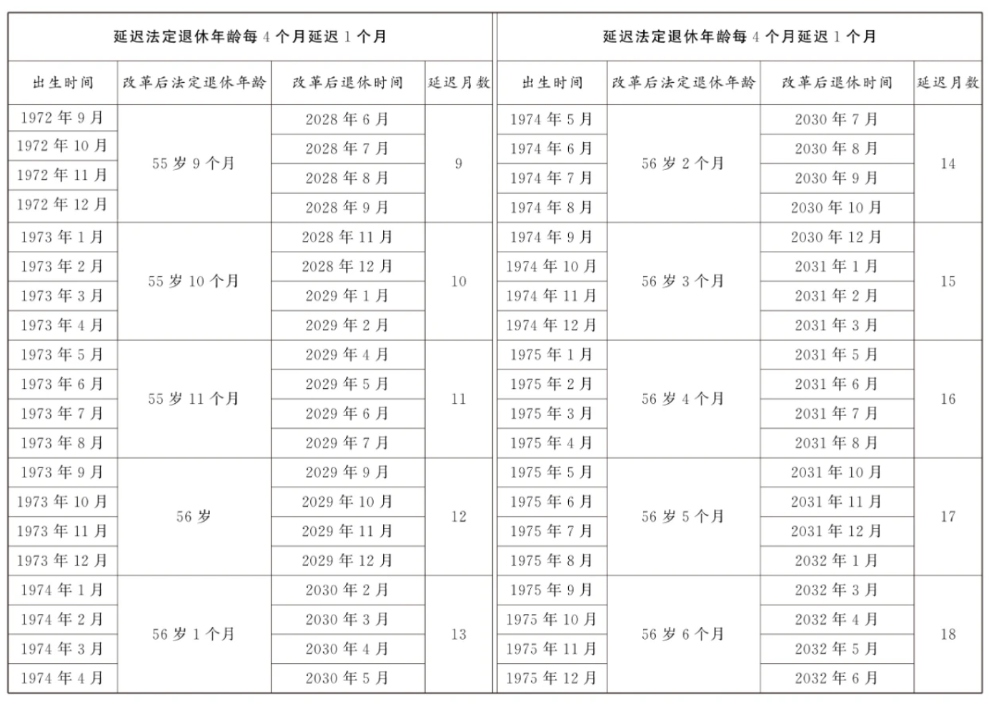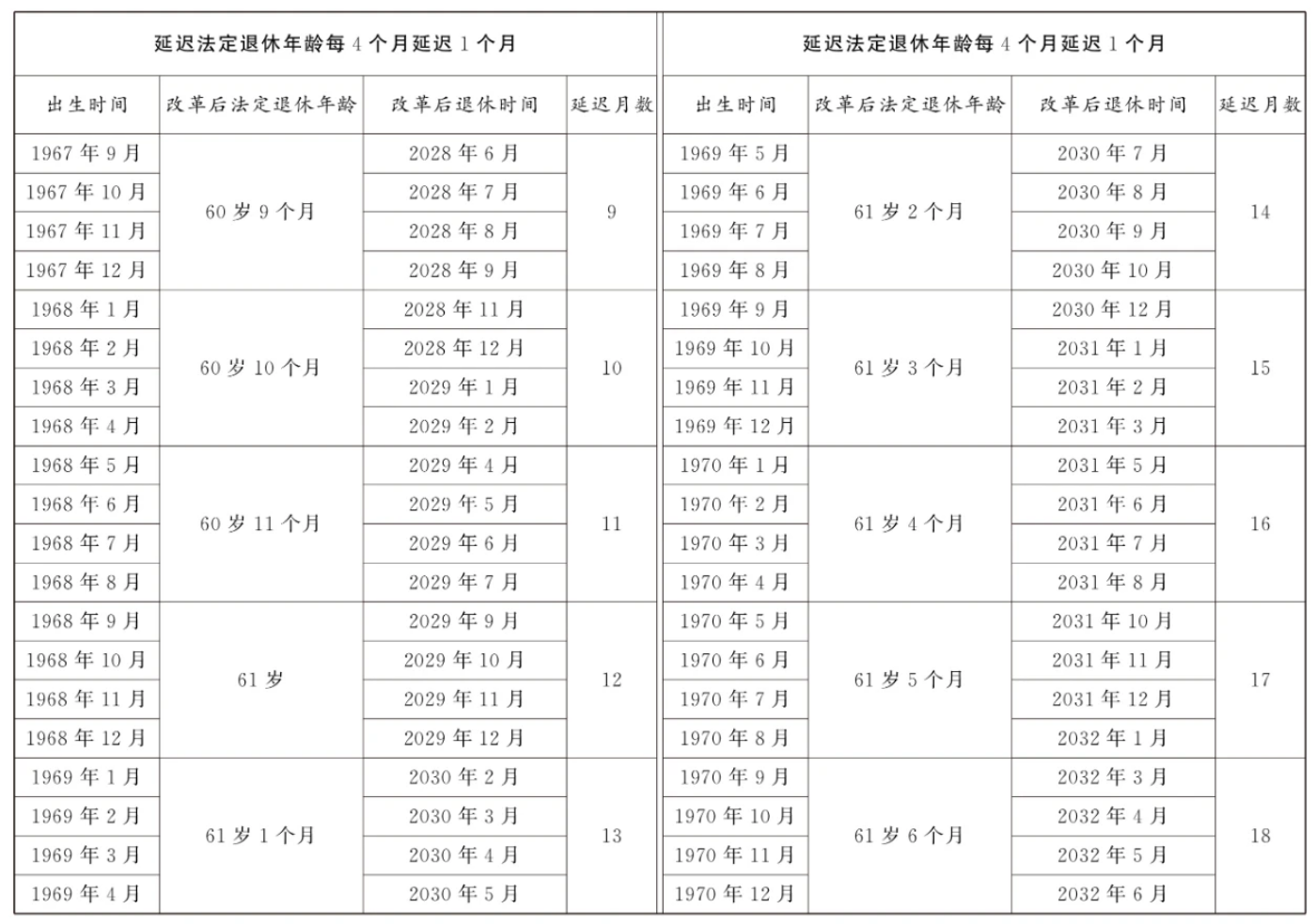 決定公布!延遲退休年齡對照表詳情