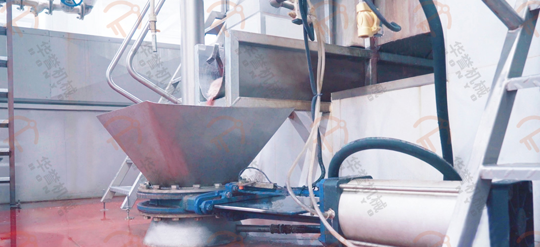 浸燙后的毛豬進入螺旋打毛機,該設備由兩臺組成,給進入的毛豬進行正反轉打毛,打毛率在98%以上。豬毛經(jīng)過下方的豬毛收集槽進入豬毛處理間。