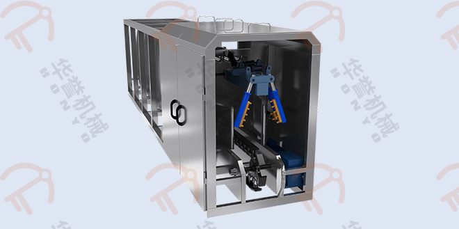 清洗過后通過輸送線送至剪頭區(qū)域,由工人用剪頭鉗進行手動處理。適用于大型屠宰工廠,能夠高效處理大量豬頭。設備設計緊湊,安全可靠且具有防水功能,適合在潮濕環(huán)境中使用,并且設備整體維護成本較低。